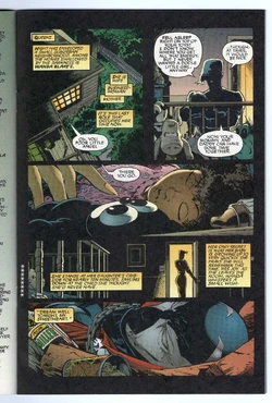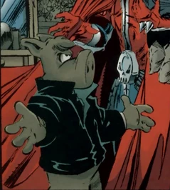 An anthropomorphic aardvark created by famed Canadian comic book creator Dave Sim who makes his only appearance in the Spawn #10. He takes Spawn around the 'alternate realm' showing him images of home, hell and more. It should be noted that he always refers to himself in 3rd person. If you look closely, you can see that in Spawn #5 of Spawn, Cyan has a Cerebus doll in her crib both in the upper right frame and the lower left side.
