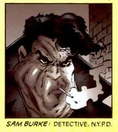 Detective Sam Burke is a detective paired with Twitch. He is often seen as the brawn of the group. Sam is a large, headstrong man with a penchant for foul language and gruff behavior. Sam is usually the one to take "action" against any type of villain they encounter.